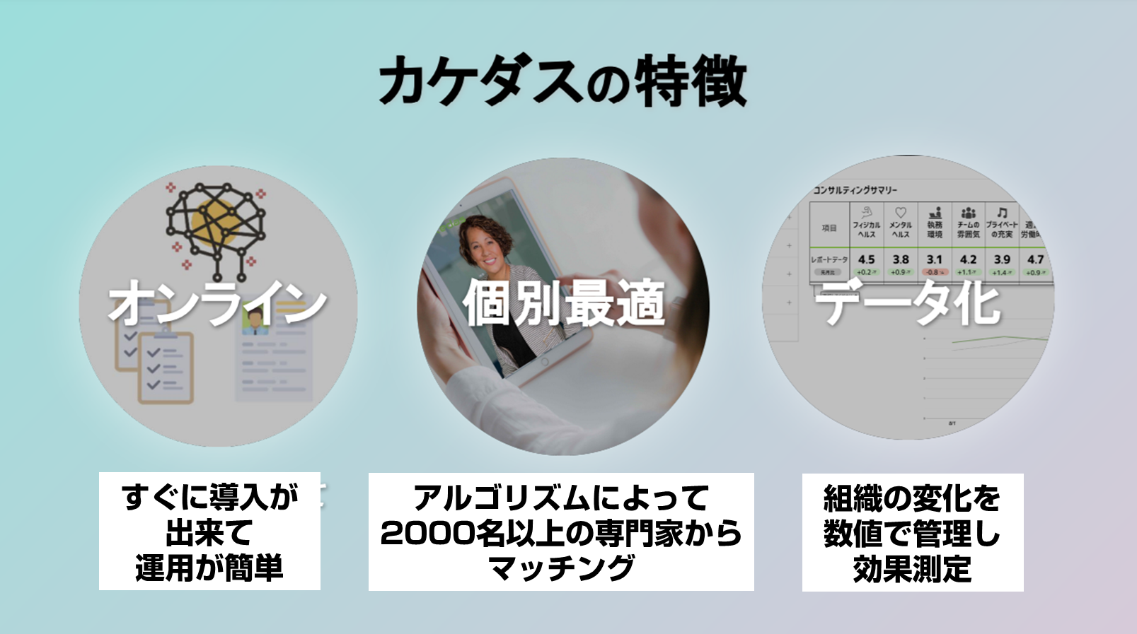株式会社Kakedasのオンラインカウンセリングプラットフォーム事業の特徴は