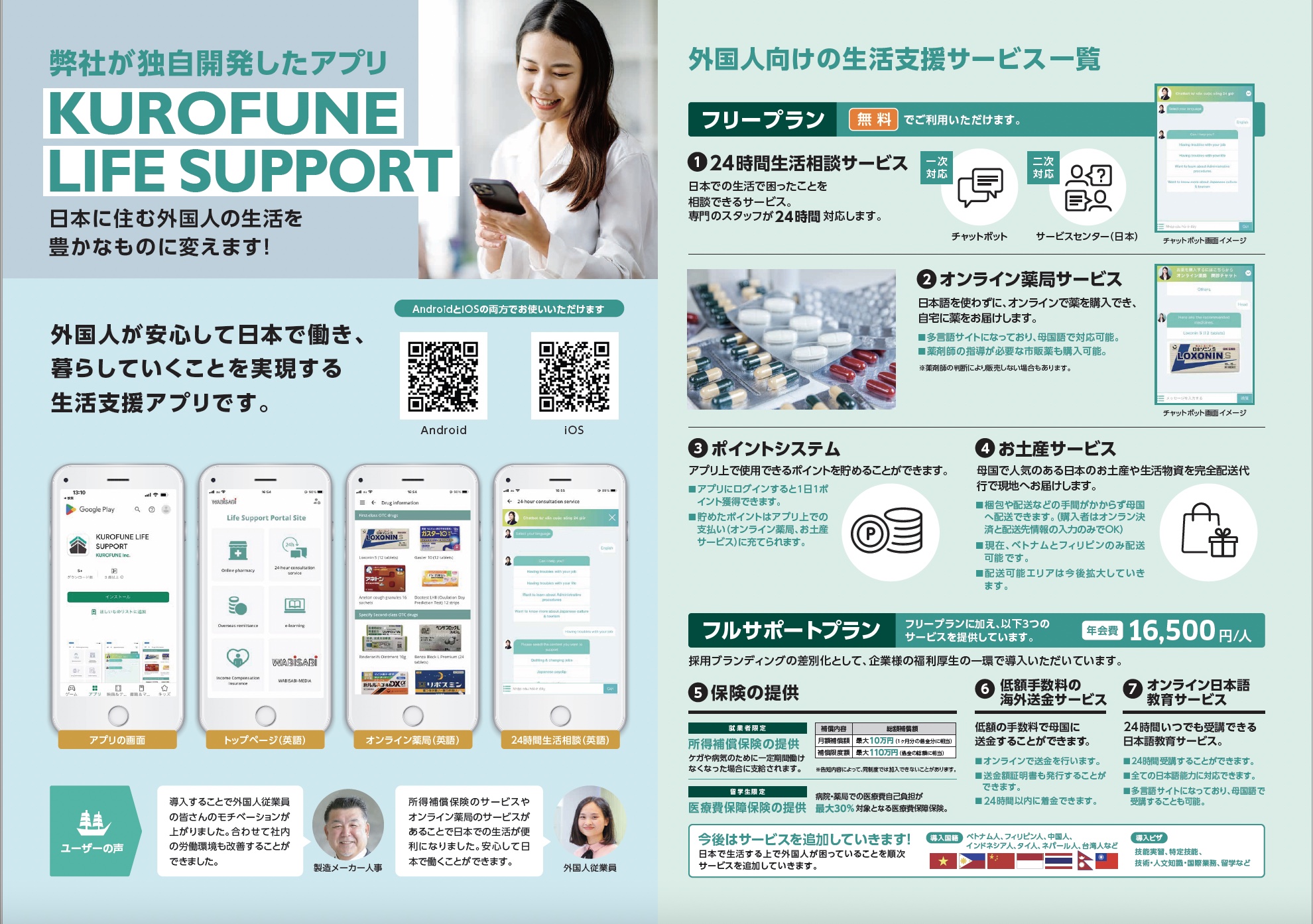 | サービス名 | KUROFUNE LIFE SUPPORT(在日外国人労働者の生活支援アプリ) |