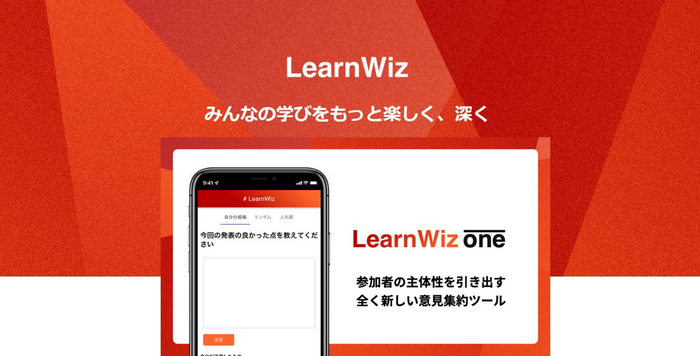 | 事業内容 | 株式会社LearnWiz(ラーンウィズ)は、東京大学工学系研究科吉田塁研究室での活動からのスピンアウトで2022年3月に創業しました。「みんなの学びをもっと楽しく、深く」のビジョンのもと、教育学と工学の専門的な知見をベースに社会実装を行うことで、世界中のすべての「学び」をアップデートすることを目指します。私たちの運用をしている意見交換プラットフォーム「LearnWiz One」は、授業やイベントに導入することで、参加者の主体性を引き出しながら、効果的な意見交換を促すことができるWebツールです。参加者同士で意見を交換して学び合う環境をWeb上に創出できることから、大学や中高、中高での導入が広がっています。 |