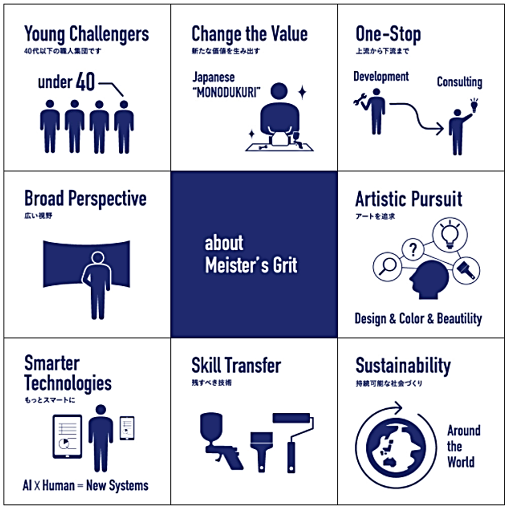 一つのモノを作り上げる上での職人たちのこだわりや微細な技術力、情熱に、日々心震わせられていた私は、社員たちの「続けたい」という声と 我々に期待してくださっている方々に応え続けられるようとことんやり抜きたいという想いで、取引先と従業員を引き継ぐ形でマイスターズグリット株式会社を創業しました。