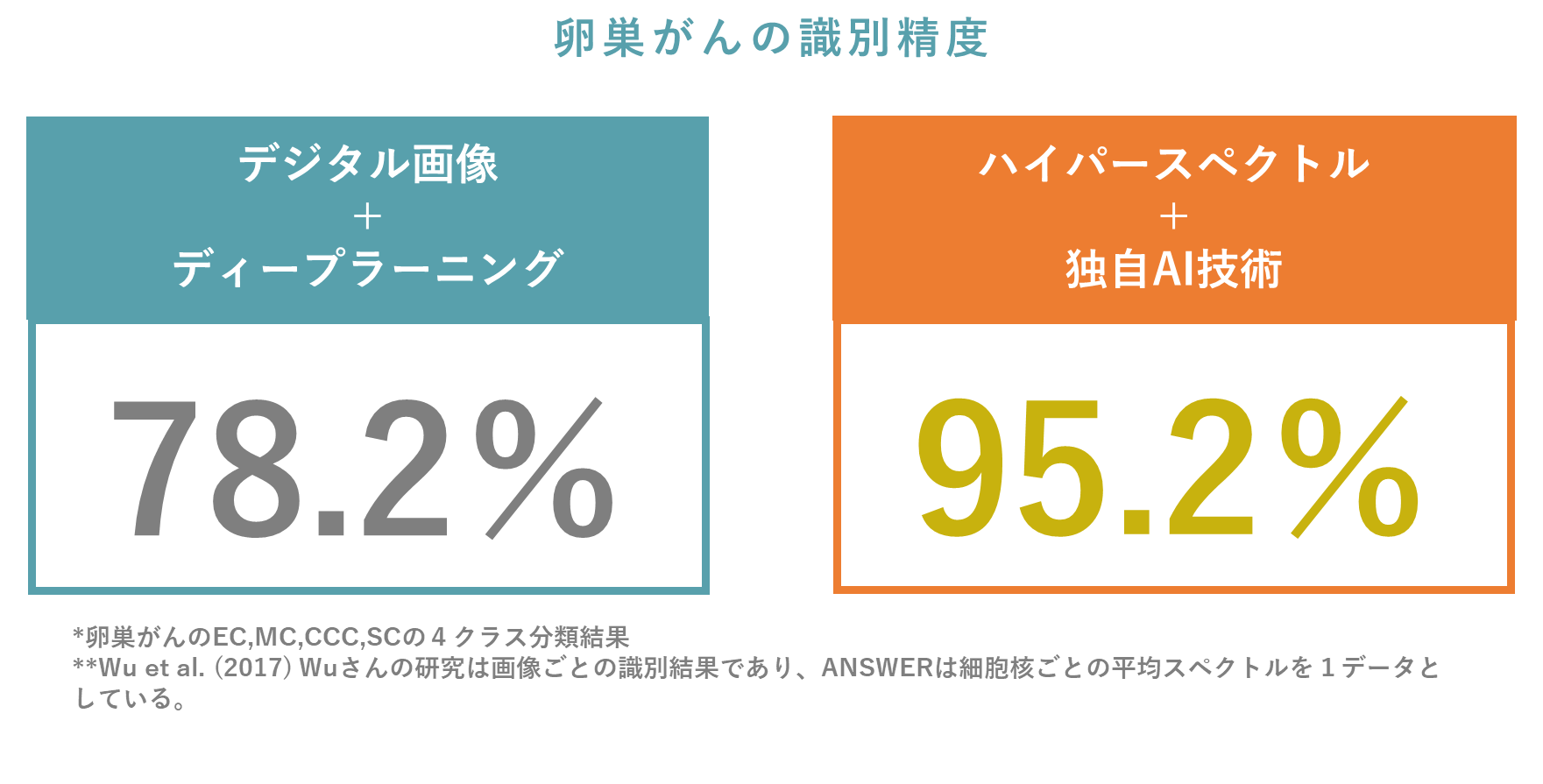 宇宙開発技術レベルのハイパースペクトル画像の色彩分解能を用いて、がん細胞の特徴量を抽出するという点です。