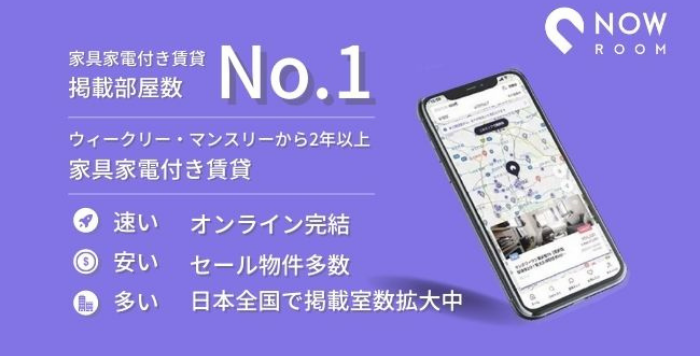「NOW ROOM」は、ウィークリーマンション・マンスリーマンション・2年以上の家具家電付き賃貸プラットフォームです。