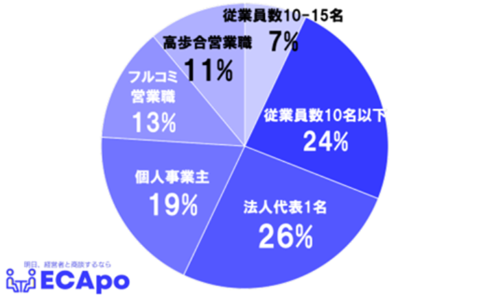 BtoB向けのサービスを展開している会社や個人の営業職の方です。実際にご利用いただいている方々も、比較的小規模な会社や個人の方が多いです。
