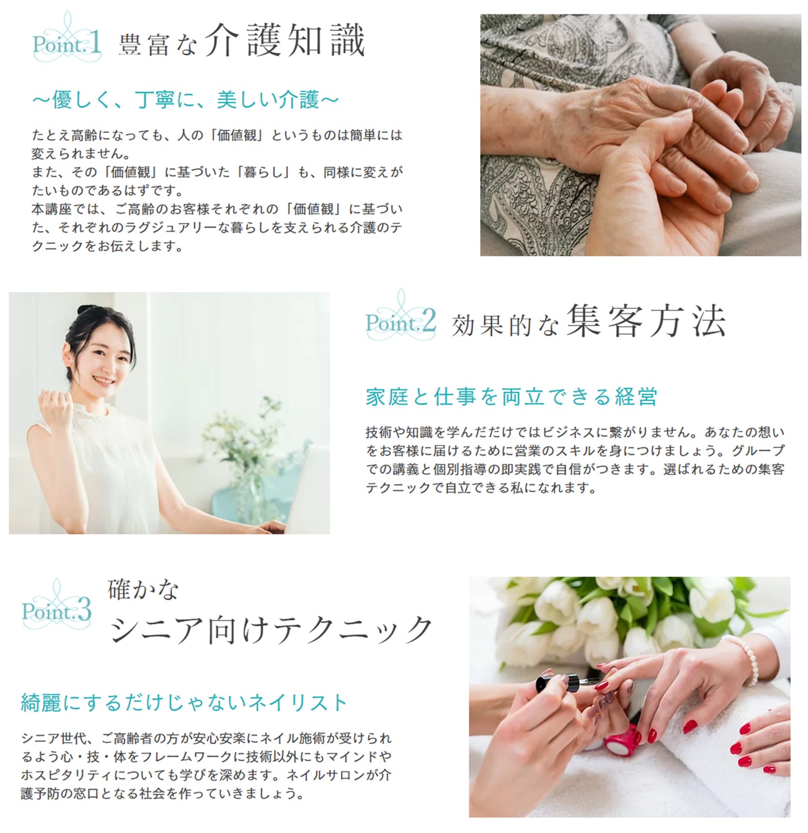 今後ますます需要が高まるであろう介護ネイルに対応できる人材を育成し、高齢者の心豊かさの支援はもとより、施術者自身の技術力向上と自立を促し、一人でも多くの個人が社会で活躍できる社会実現に向け奔走しているある起業家の取り組みに、今注目が集まっています。