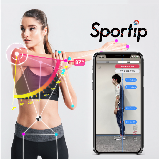 「Sportip Pro」はジム・整体/接骨院・デイサービス等のアセスメントをAIで効率化・高度化することで売上アップ・コスト削減を実現するAIアプリです。スマートフォン・タブレットで撮影するだけで個人の身体情報を可視化し、個人に最適な運動メニューをわずか”1秒” のうちに提供します。4種類の姿勢分析機能やROMテスト機能、歩行分析機能、ジャンプ計測機能など200を超える測定機能があり、子どもから高齢者、一般の方からアスリートまで幅広く分析が可能です。また、2000を超える運動メニューの中から個人の状態にあった適切な内容が自動で提案されます。