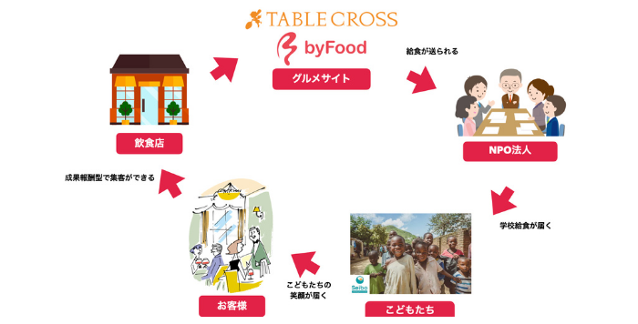 また、byFoodで予約を行うことで、収益の一部を慈善団体に寄付し、途上国の子どもたちに給食を届けることができるのも、特徴のひとつです。