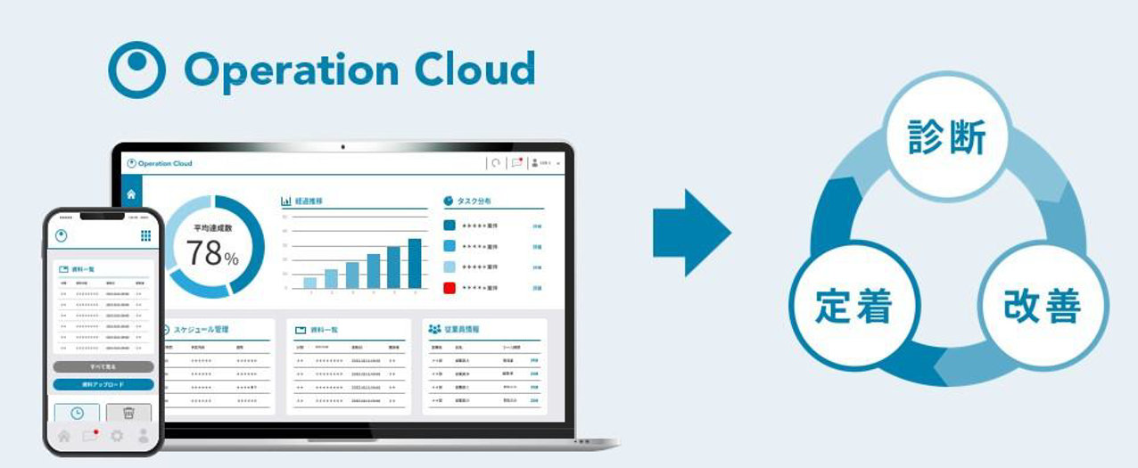 オペレーションクラウドは、大きくわけて、診断・改善・定着という3つの機能があります。