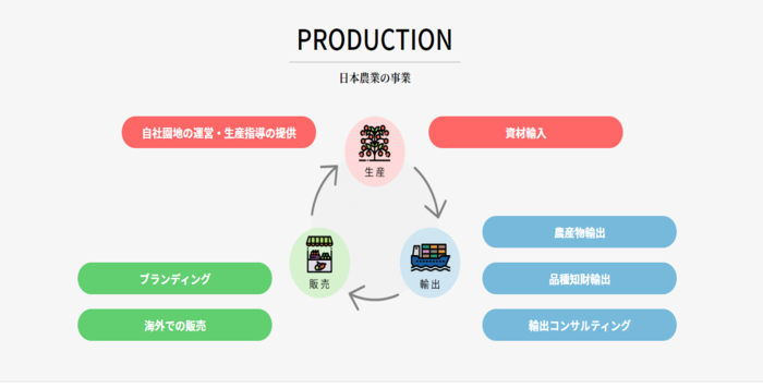 この2つを実現するために、農産物の輸出をしよう、輸出するために自分たちでも農業生産をしよう、さらに輸出だけじゃなくて海外生産をしようと広がっていきました。