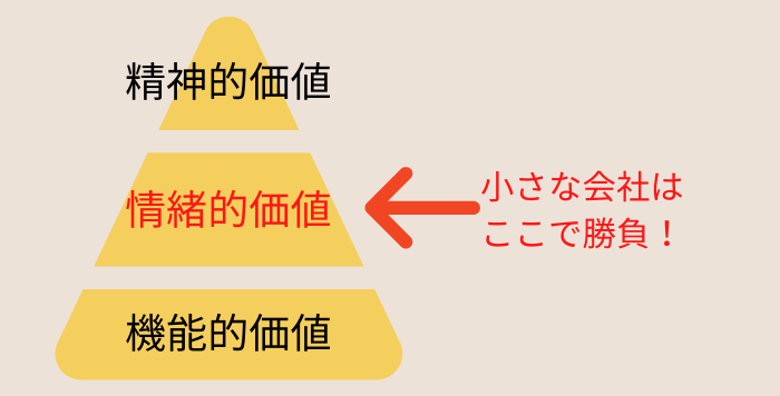 大久保:『ネット通販 億超えのルール』で紹介されている「精神的価値」「情緒的価値」「機能的価値」のピラミッドが、お客様の価値の例としてわかりやすいですね。お客様のファン化は「情緒的価値」に当てはまるのでしょうか?