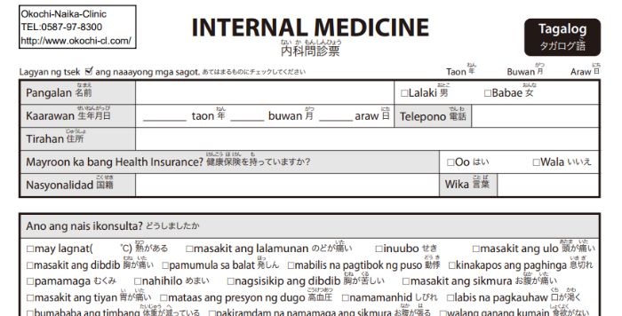 日本に来たばかりの外国の方は日本語の予診票を読めませんから、その人の母国の問診票を用意してあげて、安心してワクチン接種を受けてもらうことは大切だと思います。実際に僕が予防接種を打ちに行く地元企業では、外国人の従業員の方が、よくうちのホームページのタガログ語の予診票を印刷して持ってきてくれますよ。