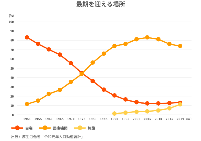 符:そうですね。戦後に医療が発達して、高度経済成長期に次から次へと病院が建ったことで、入院してそのまま最期を迎えるのが一般的になりました。