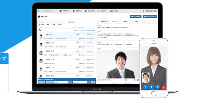 「HARUTAKA」は株式会社ZENKIGENが提供しています。シンプルな操作で利用できる設計になっており、例えば応募者に聞きたい質問などもカンタンにカスタマイズすることができます。応募者側は、特定のアプリなどを必要とせず、インターネット環境があればすぐ選考に参加できる手軽さも特徴です。