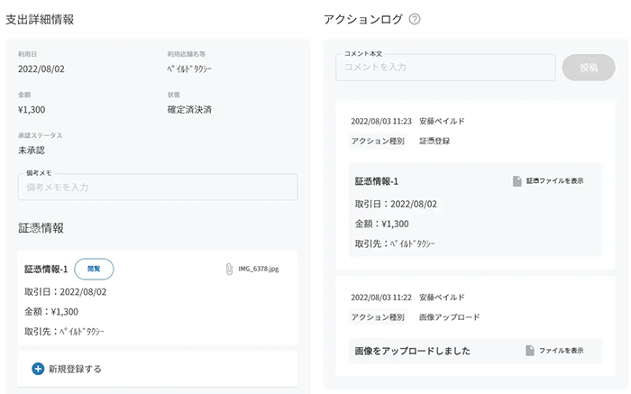 また、改ざん防止機能がついており、証憑の添付や日付・金額等の記録事項に関して、全ての修正ログを記録することができます。