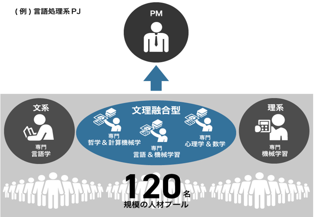 私たちがやろうとしている第4世代AIの開発は、文部科学省がここ数年で発表した定義であり、文理融合型の知識や経験を必要とします。