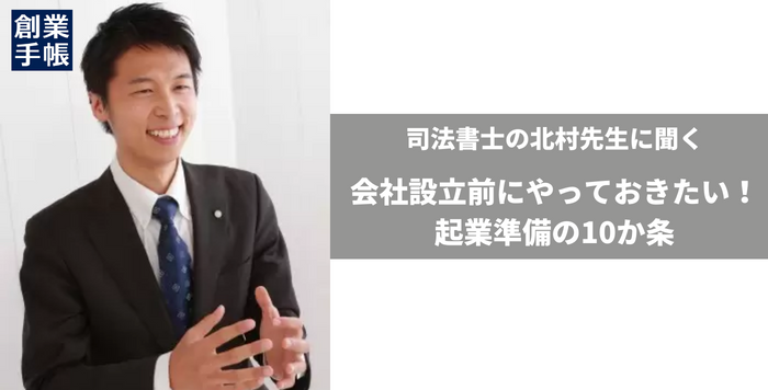今回は、司法書士の北村祐人先生に、起業準備の実践的なノウハウを伺いました。