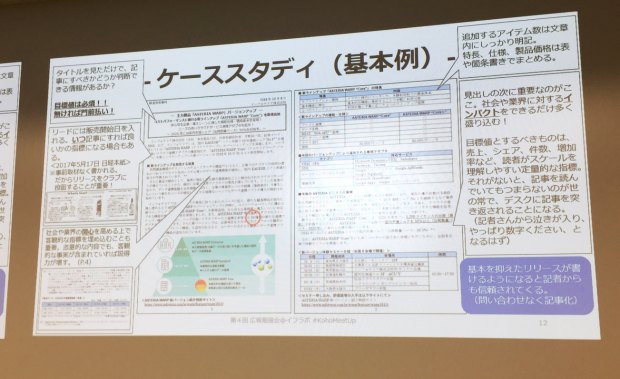 今回のイベントでは、プレスリリースの基本を押さえたところで、様々な事例を紹介されました。