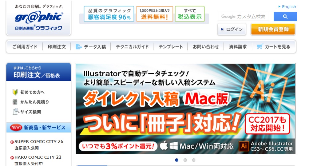 午前10時までの入稿で即日出荷可能(諸条件によります)。最新のAdobeCCやOfficeなど20種類のソフトに対応していて、きめ細かで柔軟な対応が高評価です。他社で相談できなかった事もまずこちらで聞いてみては如何でしょう。