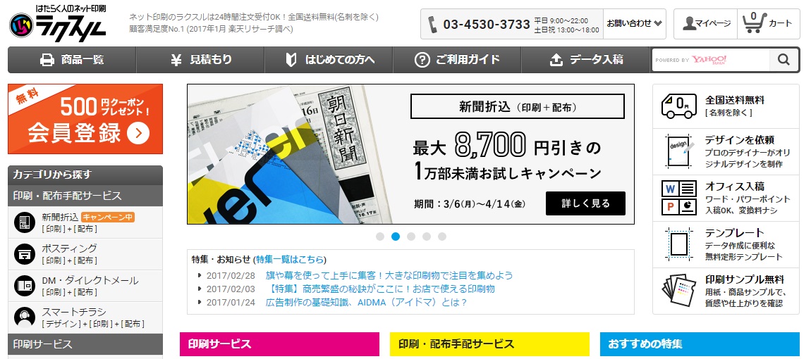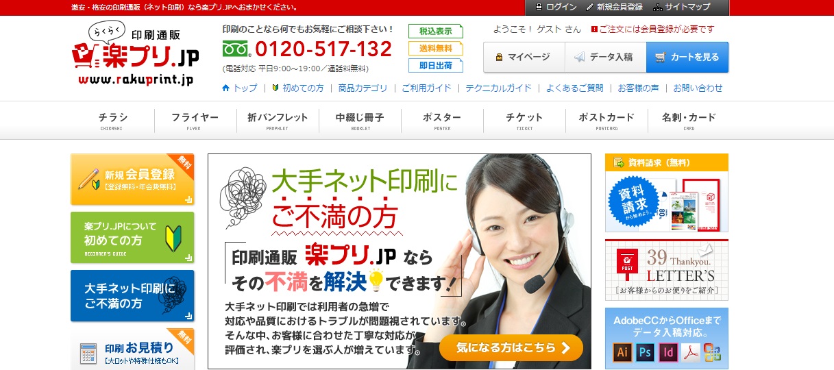 チラシならラクスル、老舗独自の対応力がある楽プリ.JP、技術力向上思考にあるネットDEコム。