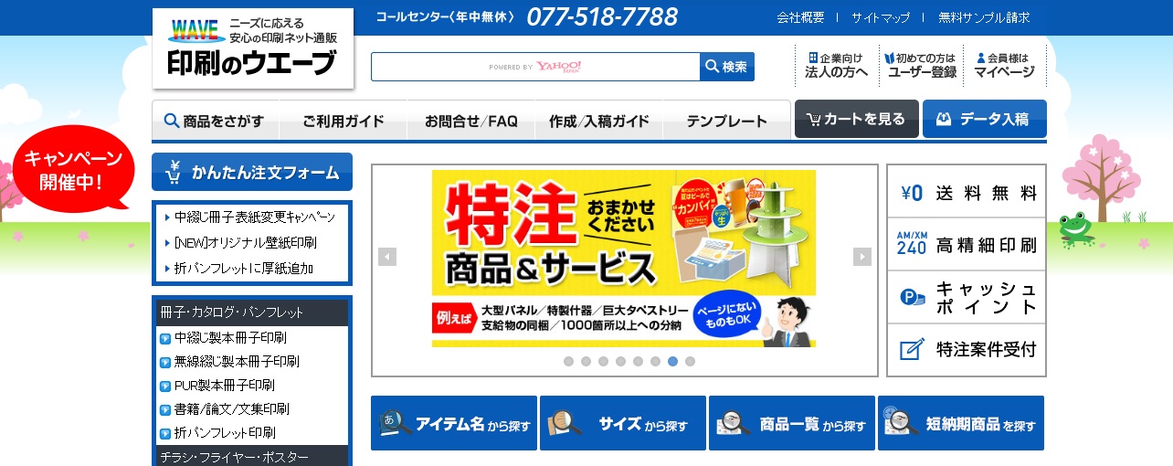 きめ細かく対応力のある印刷通販の定番サイト。用紙・封筒種類、特殊加工オプション豊富にあります。ジャパンカラーの上位認証であるマッチング認証を取得した高品質印刷。FMスクリーン印刷可能です。カーボンフク機ットプリント表示、モバイルサイト、入稿データ自動チェック能等もあります。