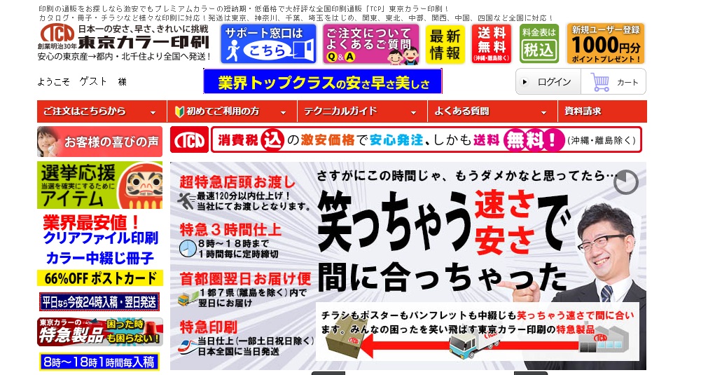 東京23区内なら夕方18時入稿で当日届けの東京カラー印刷。超特急印刷に強みがあります。徹底した低価格。PDF入稿なら24時間無料で仕上がり確認ができる校正自動ロボットを業界で初めて導入しています。240線の高精細格安印刷も特徴です。