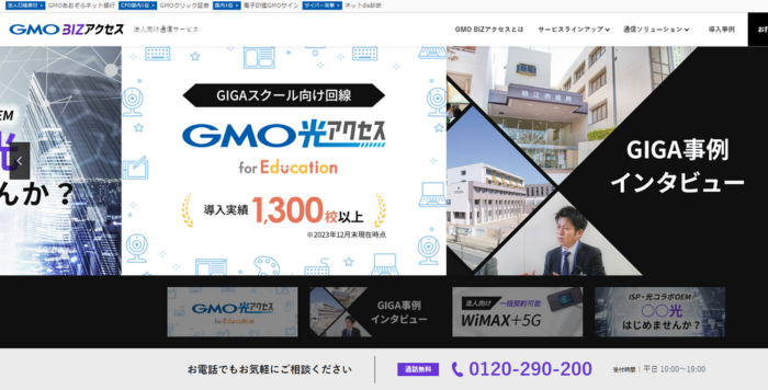 プロバイダや光コラボサービスを提供する「GMO BIZアクセス」は、法人向けのWiMAX+5Gなどを展開しています。