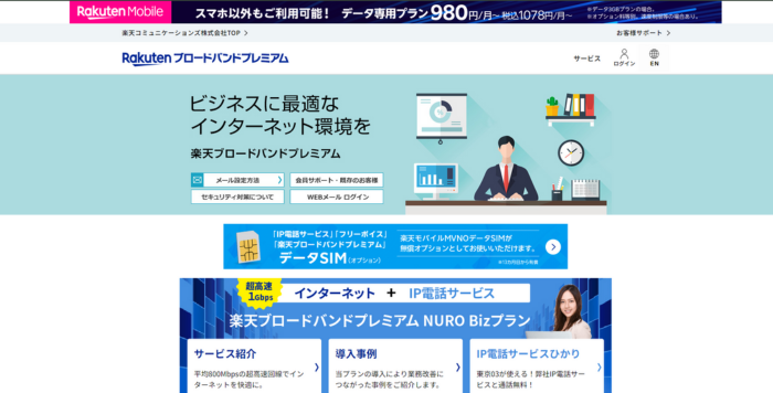 「楽天ブロードバンドプレミアム」は、楽天ひかりやNURO Bizなどの法人プランを提供するプロバイダです。