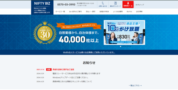 出典元:NIFTY BIZ公式サイト (@nifty法人向けサービス | NIFTY BIZ)
