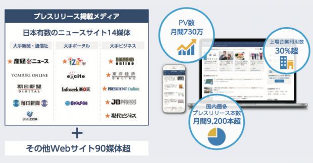 さらに、PR TIMESでは、配信できる媒体が12,000件を超え、その中から300媒体を選択できます。日本有数の閲覧者を誇るニュースサイト14媒体を含む、多数Webサイトに掲載されており、「生活者に最もよくリーチできるプレスリリース配信サイト」と言っても過言ではありません。