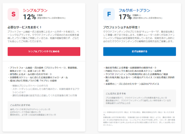 また、READYFORには、「シンプルプラン」と「フルサポートプラン」の2つを用意しており、ニーズに合わせて選べます。