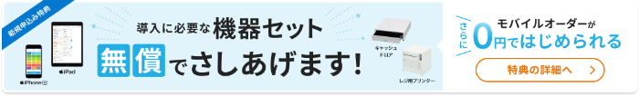 モバイルオーダーを0円ではじめられる、大変オトクな特典となっておりますので、ぜひ検討してみてください。