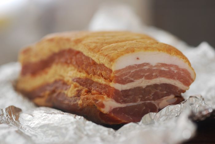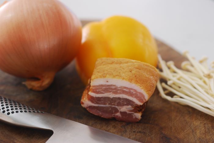 ベーコンは欧州では出汁としてしばしば利用されており、本来はとても香り高く滋味に満ちたうま味を持っています。昔ながらの製法で作るベーコンは手間と時間がかかり、一般的にあまり広く流通していません。専門店などを利用するといいでしょう。手間と時間をかけてていねいに作られている分、本格的な製法で作られたベーコンには肉のうま味が凝縮されています。それだけで出汁がとれるくらいに素晴らしいうま味と香りなので、ぜひお試しください。料理の仕上がりが一つも二つも変わります。