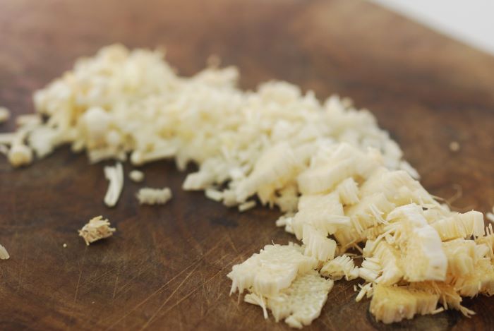 4.えのきだけとにんにくをカットする