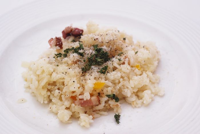 今回ご紹介するのは、フライパンや鍋をはじめコンロすら必要のない超お手軽・簡単なリモート飯「ベーコンバターのガーリックライス」です。使用するのは炊飯器だけ。あらかじめ材料をカットしてセットしておけば、あとは炊飯器が勝手に仕事をしてくれるという優れものです。ご飯が炊けたらそのまま器に盛りつけて食べられる上、イタリアンシェフも驚きのおいしさに毎日の食事が楽しくなるはず。