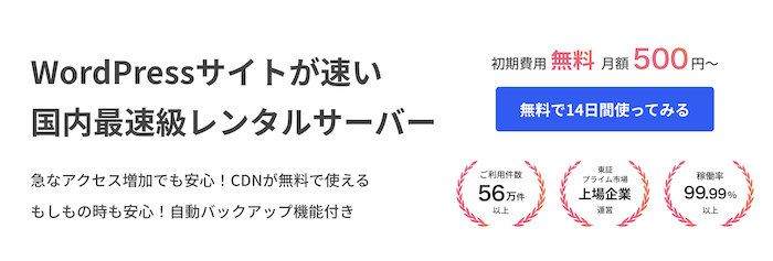 おすすめのレンタルサーバーは、たったの2分でホームページが作れる月額500円〜のレンタルサーバー「さくらのレンタルサーバ」です。