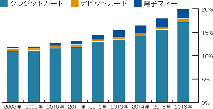 出典:経済産業省 『キャッシュレス・ビジョン』より キャッシュレス支払額と民間最終消費支出に占める比率