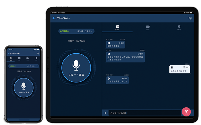 「Buddycom」の特長は、インターネット通信網(4G・5G・Wi-Fi) を使用した音声・映像のプッシュツートークにより、チームのリアルタイムコミュニケーションを実現していることです。
