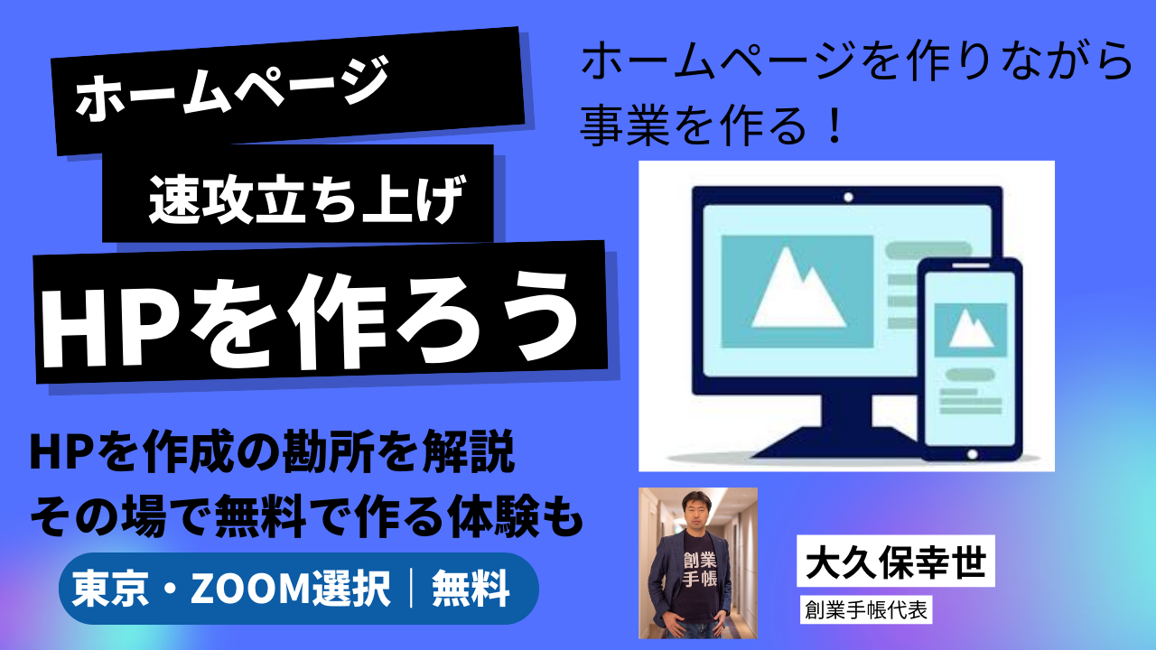 8月29日(木)17:30-18:30 HPを作ろう(東京/ZOOM) 無料 実際に無料ツール(ペライチ・wixなど)でHPを作成