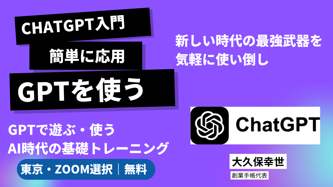 8月15日(木)17:30-18:30「GPTを使おう」(東京/ZOOM) 無料 ChatGPTの使い方講座