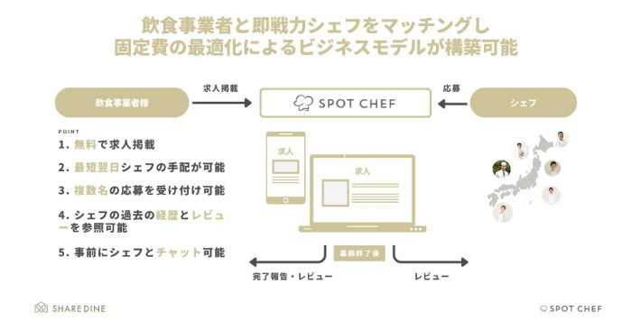 このようなニーズは他の飲食店にもあるかもしれないと考えました。そこで、2022年からベータ版として、飲食店とシェフをマッチングするサービス「スポットシェフ」をスタートし、2023年に正式にローンチしました。
