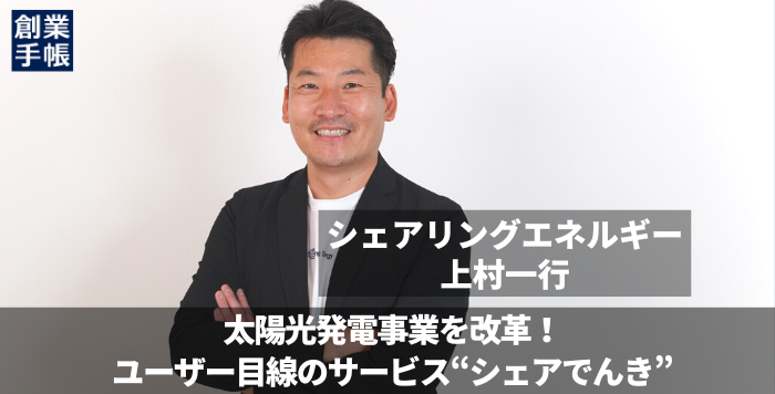シェアリングエネルギー 上村一行|初期費用0円の太陽光発電サービスで資金調達76.3億円を達成。「シェアでんき」で目指す脱炭素社会