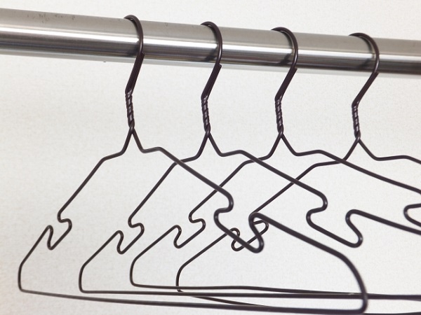 ワイヤーハンガーは形を変えられるので、場所を選ばずかけられます。宿泊先にハンガーが少ない場合に洋服や洗濯物を干すのに重宝します。安物のハンガーなので不要になれば宿泊先で処分できます。