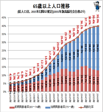 今後も徐々に高齢者が増加していくと見込まれており、2050年には高齢者の割合はおよそ39%まで拡大する見込み。その中でも75歳以上の後期高齢者の割合は2050年には約25%まで拡大するとみられています。