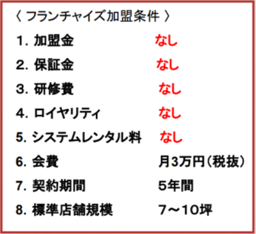 以上の粗利から家賃や光熱費などを引いた部分が、加盟社の利益となります。ビジネスを拡大しスタッフを雇った場合には、ここから人件費を捻出していくことになります。