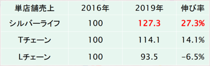 シルバーライフはこの期間の売上高が、1店舗あたりで平均+27.3%拡大。