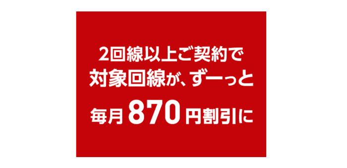 1.スモールスタートから拡張性抜群!2回線以上ご利用で毎月870円×回線分を割引