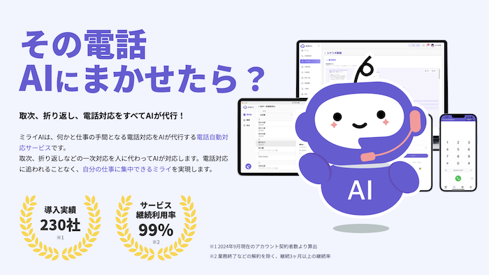 おすすめのAI電話自動対応サービスは「ミライAI」