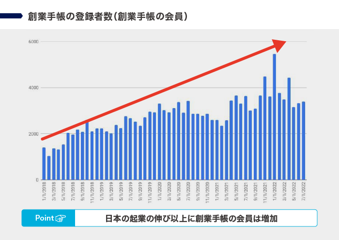 そこでおすすめしたいのが、創業手帳での商品紹介です。創業手帳はWeb月間120万人の来訪、冊子月間15,000部発行、メルマガ会員数93,000人を誇る起業家・経営者向けガイドブックです。コロナ禍でも会員数は順調に増加し続け、2022年1月には過去最高を更新しました。毎月設立されたばかりの法人に着実に届く創業手帳の冊子、起業家・経営者向けに役立つ情報を発信する創業手帳Web、冊子(アナログ)とWebサイト(Web)の両面から着実に起業家・経営者にアプロ―チできます。