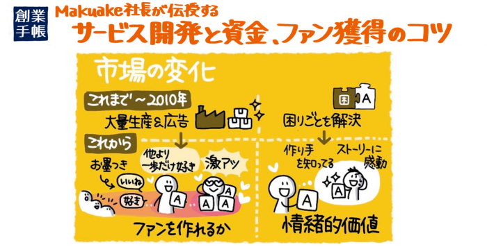 そうなれば、次の商品展開など、より事業を大きく広げたいときに、ファンである顧客に甘えられる構造ができるといいます。このように、ファンを持っている企業は勝ち組、ファンを持っていなければ大企業でも勝つことはできない時代、というのがこの10年でみえてきたマーケットの変化だと言われました。
