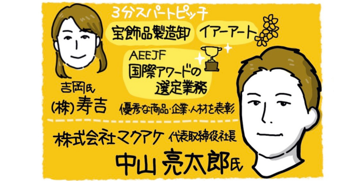 また、寿吉は経済産業省主催の起業セミナーやIJT・IJK主催のビジネスセミナー、韓国昌信大学・大学院にてビジネスセミナー、兵庫県活性化センターにて起業セミナーなど、国内外数多くのセミナー実績があります。これらの実績も、AEEFJ国際アワードの日本の選定業務を担当することになった理由でもあるそうです。