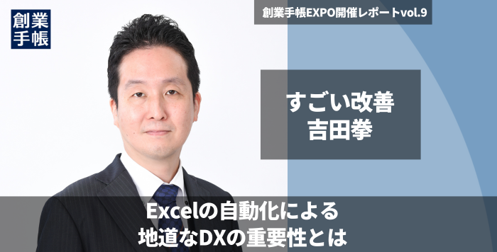 6月2日に、Excel活用のプロである「株式会社すごい改善」代表取締役の吉田拳氏が登壇し、第9回創業手帳EXPO「DX・業務改善」を開催しました。